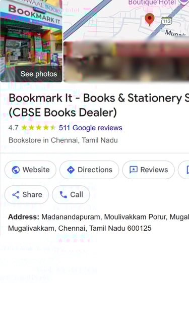 Bookmark It offers all CBSE essentials—latest NCERT textbooks, guides, solved papers, and more in Mugalivakkam/Porur, Chennai.